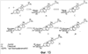 Таким образом, BBGL-II и BBGL-III выделяли из штаммов В31, N40 и BL303 (15) B. burgdorferi и очищали почти до полной однородности хроматографией на силикагеле. При помощи разных аналитических методов (ГЖХ, MALDI-TOF, FAB и ЯМР-спектроскопия) структура основных полярных мембранных гликолипидов B. burgdorferi была определена как холестерил-6-О-ацил- -D-галактопиранозид (BBGL-II, фиг.8) и 1,2-диацил-3-[O- -D-галактопиранозил]-sn-глицерин (BBGL-III, фиг.9).