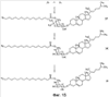Соединение 4 (см. фиг.12) получали из галактозы 1, которую обрабатывали пивалоилхлоридом в пиридине. Вместо ожидаемого пентапивалоильного производного было получено частично пивалоилированное соединение 2 с хорошим выходом и высокой чистотой, не требующее хроматографической очистки. Свободная гидроксильная группа в соединении 2 была защищена ацетильной группой ( 3). Полученный продукт обрабатывали гидробромидом в уксусной кислоте, получая при этом галактозилбромид 4. Бромид 4 связывали с холестерином 5, промотируя реакцию трифторметансульфонатом серебра в дихлорметане, в результате чего происходило стереоселективное образование требуемого -галактозилхолестерина 6 (см. фиг.13). При выполнении 1Н ЯМР-спектроскопии была обнаружена -аномерная конфигурация. О-защитные группы затем удаляли, производя обработку метоксидом натрия в смеси безводного дихлорметана и метанола, и получали холестерил- -D-галактопиранозид 7 в виде аморфного твердого вещества.