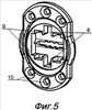 Крышка 1 устанавливается на корпус 3. Между корпусом 3 и крышкой 1 расположена предохранительная планка 4, имеющая также ключевую скважину и которая закрывает установленные в полости корпуса 3 подпружиненные пружиной 5 ролики 6. Ролики 6 расположены параллельно, по меньшей мере, ключевой скважине 2 и подпружинены один к другому. Как видно из фиг.3, в корпусе с внутренней стороны также выполнена ключевая скважина 2, и поэтому ключ для попадания непосредственно в сувальдный механизм замка должен пройти насквозь всей ключевины. Предохранительная планка 4 имеет четыре выступа 7 с зубцами на них. В полости корпуса 2 симметрично ключевой скважине выполнены пазы 8 для размещения в них пружин 5 и четыре паза 9, в которых защелкиваются выступы 7 при надевании предохранительной планки 4 на корпус 2. Корпус 2 монтируется с внешней стороны двери посредством крепежных отверстий 10. Предохранительная планка 4 с внутренней стороны имеет выступ 11, расположенный по оси симметрии ключевой скважины для более легкого ввода ключа в скважину, за счет более легкого разведения роликов ключом. А с внешней стороны она имеет выступ 12, проходящий через ключевую скважину 2 крышки 1 наружу. Крышка 1 и корпус 3 могут соединяться различными способами, например с защелкиванием за счет соединения скважины 2 с выступом 12, а также за счет других (не показанных) защелкивающихся элементов.