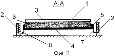 На фиг.1 изображена общая схема предложенного помоста, на фиг.2 – разрез А-А фиг,1. на фиг.3 – фронтальный разрез виброизолятора.
