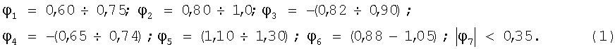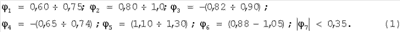 1=0,60÷0,75; 2=0,80÷1,0; 4=-(0,65÷0,74);