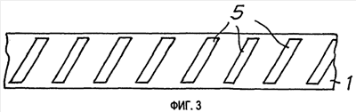 В одном предпочтительном варианте осуществления, показанном на Фиг.3, вместо выступающих областей 4 в виде точек и окружностей также возможно нанесение выступающих областей 5 в виде полосок на провод 1 обмотки на расстоянии друг от друга. Как видно, выступающие области 5 в виде полосок могут продолжаться под углом к продольному направлению провода обмотки 1 или могут располагаться параллельно друг другу. Тем не менее, они могут также продолжаться под прямым углом к продольному направлению провода 1 обмотки и могут также располагаться не параллельно друг другу. Также возможно нанесение обеих выступающих областей 4 в виде точек или окружностей и выступающих областей 5 в виде полосок на провод 1 обмотки в любой желаемой последовательности.
