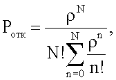 Вероятность отказа в обслуживании абонентов (Pотк) определяется по следующей формуле (Щекотихин В.М., Терентьев В.М. Прикладная математика: Учебное пособие. – Орел: Академия ФАПСИ, 2002. – 209 с.) (стр.53):