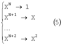 Также, используется обычная операция умножения, за исключением того, что с членами полинома, степень которых выше N происходит ряд замен:
