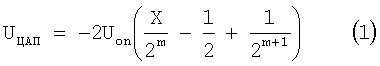 В общем виде зависимость выходного напряжения UЦАП биполярного ЦАП от входного кода числа Х при опорном напряжении UОП выражается формулой
