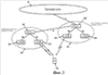 Фиг.2 иллюстрирует текущую архитектуру UTRAN. Несколько контроллеров 201, 202 радиосети (RNC) соединены с CN 101. Каждый RNC управляет одной или несколькими базовыми станциями 203, 204, 205, 206 (узел Bs), которые, в свою очередь, взаимодействуют с абонентской аппаратурой. RNC, управляющие несколькими базовыми станциями, называются управляющими RNC (C-RNC) для этих базовых станций. Набор управляемых базовых станций, сопровождаемых своими C-RNC, упоминается как подсистема 207, 208 радиосети (RNS). Для каждого соединения между абонентской аппаратурой и UTRAN одна RNS является обслуживающей RNS (S-RNS). Она поддерживает так называемую связь lu с базовой сетью 101 (CN). Когда необходимо, RNS дрейфа 302 (D-RNS) поддерживает обслуживающую RNS 301 (S-RNS) посредством предоставления радиоресурсов, как показано на фиг.3. Соответствующие RNC также называются обслуживающими RNC (S-RNC) и RNC дрейфа (D-RNC). Также возможно и это часто так, что C-RNC и D-RNC являются идентичными и, следовательно, используются сокращения S-RNC или RNC.