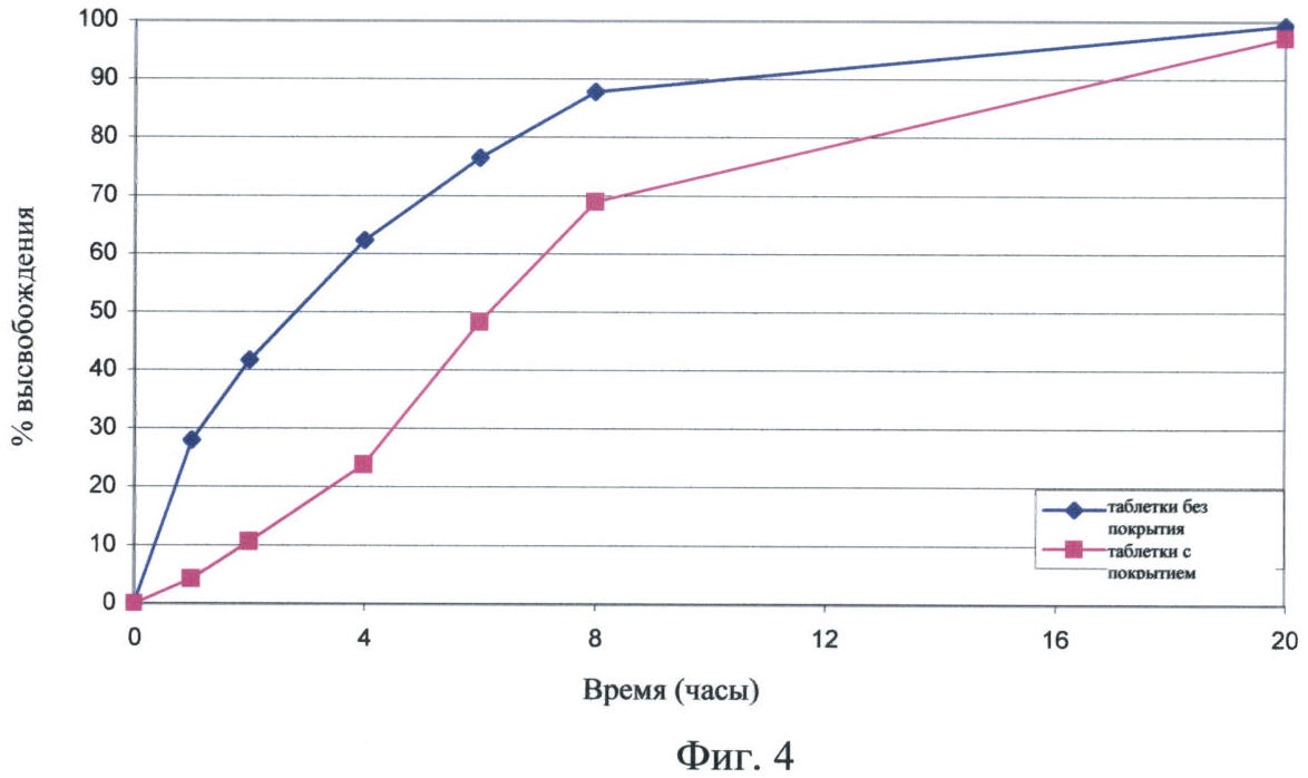 Фиг.4 – профили высвобождения in vitro таблеток метопролола сукцината.