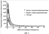 На фиг.3 показана средняя концентрация оспемифена в сыворотке мужчин (n=12) в динамике во времени метаболита оспемифена 4-гидроксиоспемифена, после введения таблетки 60 мг оспемифена в состоянии натощак (незаштрихованные треугольники), после потребления высококалорийной пищи с высоким содержанием жира (заштрихованные треугольники) и после низкокалорийной пищи с низким содержанием жиров (крестики).
