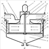 Чертеж представляет осевой разрез ротоклона с сеткой. Помимо общепринятых цифровых обозначений применен показ направлений движения аэросуспензии и ее компонентов стрелками. Стрелки: а) с округлым оперением указывают направление движения аэросуспензии; б) без оперения – направление движения очищенного газа; в) с квадратным оперением – направление движения пыли.