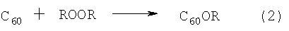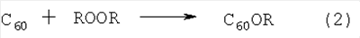 Известен способ ([3], P.J.Krusic, Е.Wasserman, В.А.Parkinson, В.Malone, E.R.Holler, P.N.Keizer, J.R.Morton, K.F.Preston. J. Am. Chem. Soc, 1991, 113, 6274) получения алкокси-радикалов фуллерена формулы (2) введением в молекулу С60 алкокси-радикалов, генерируемых из диалкилпероксидов: