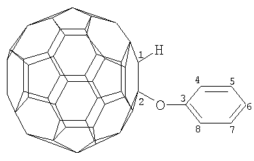 1-Фенокси-1,2-дигидрофуллерен (1) образуется только с участием фуллерена[60] и фенола.