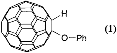 Фенол берут с избытком по отношению к фуллерену С60 с целью повышения выхода целевого продукта (1). Снижение количества фенола по отношению к С60 нецелесообразно, так как приводит к уменьшению выхода целевого продукта.