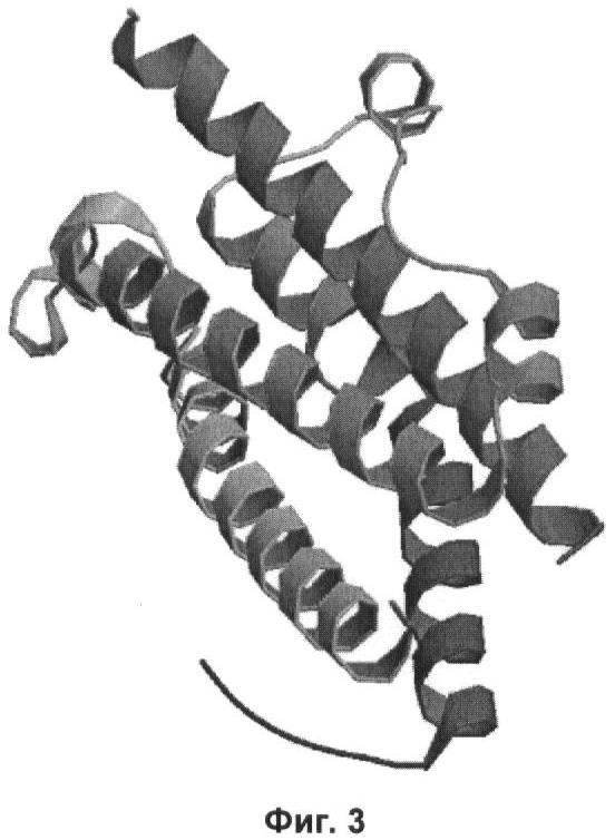 Исходными данными для работы послужили первичные и пространственные структуры белков, импортированные из банка данных Protein Data Bank [6]. В базе данных банка проводили поиск пространственной структуры OSM. В результате для компьютерного конструирования отобрали пространственную структуру OSM [5] (фиг.3).