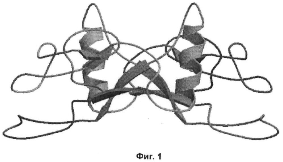 фиг.2 – пространственная структура белка TGF- с идентифицированным функциональным сайтом (функциональный сайт выделен);