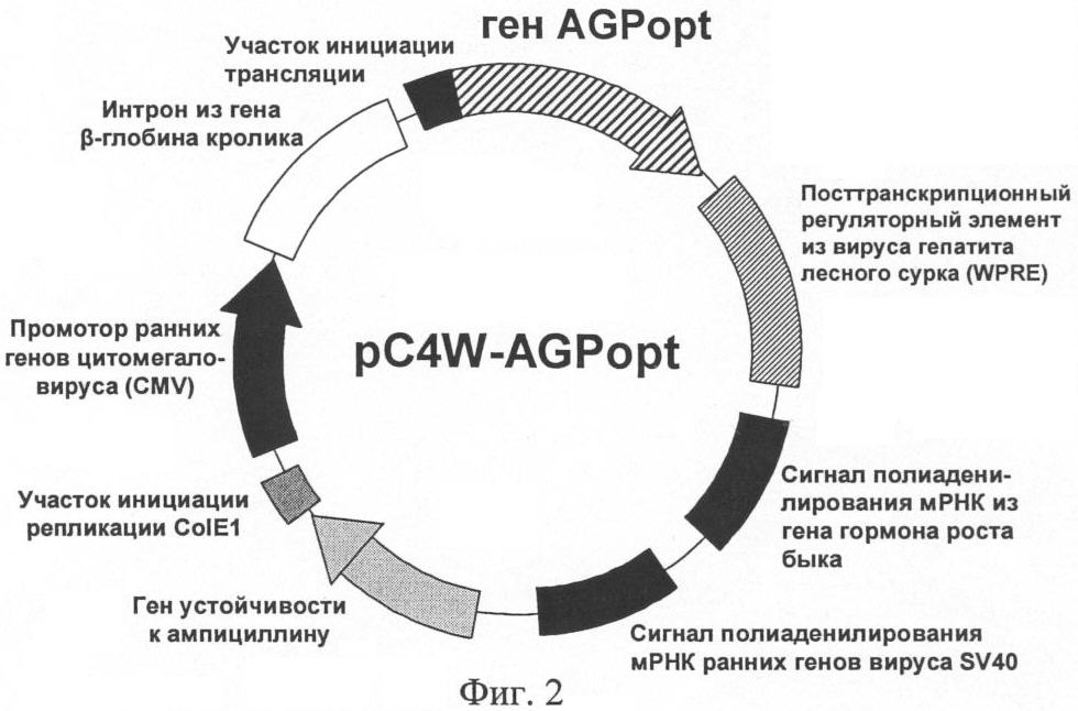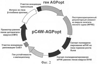 На фиг.2 приведена функциональная карта плазмиды pC4W-AGPopt.