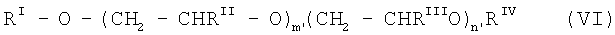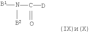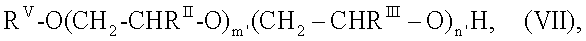 или алкилгалогенидом с 1-10 атомами углерода, в особенности с 1-4 атомами углерода, предпочтительно алкилхлоридом или алкилбромидом, циклогексилгалогенидом или фенилгалогенидом, предпочтительно хлоридом или бромидом, где RIV имеет указанное выше значение, в присутствии гидроксида щелочного металла. Реакцию проводят при температуре от 20 до 60°С в присутствии водного раствора гидроксида щелочного металла, причем концентрация гидроксида щелочного металла на протяжении всей реакции не может быть ниже 35 мас.% от водной фазы, а на моль-эквивалент органических гидроксильных групп используют, по меньшей мере, 1 моль диалкилсульфата формулы (VIII) и, по меньшей мере, один моль гидроксида щелочного металла. Все алкильные группы, указанные в приведенных выше формулах (VI), (VII) и (VIII), могут быть как прямоцепочечными, так и разветвленными. RI, RIV и RV означают, например, метил, этил, пропил, изопропил, бутил, изобутил или втор-бутил. RI и RV означает также, например, пентил, изопентил, втор-пентил, трет-пентил, гексил, 2-метилпентил, гептил, октил, 2-этилгексил, изооктил, нонил, изононил, децил, изодецил, ундецил, додецил, тридецил, 3,5,5,7-тетраметилнонил, изотридецил, тетрадецил, пентадецил, гексадецил, гептадецил, октадецил, нонадецил или эйкозил (обозначения «изооктил», «изононил», «изодецил» и «изотридецил» – это тривиальные обозначения, происходящие от спиртов, получаемых после оксосинтеза – ср. Ullmann, Enzyklopädie der Technischen Chemie, 4. Auflage, Band 7, стр.215-217, а также Band 11, стр.435 и 436). В качестве исходных веществ предпочтительно используют производные полиоксиалкиленов формулы (VI), где RV означает водород или алкил с 8-16 атомами углерода. Кроме того, предпочтительные производные полиоксиалкиленов формулы (VII) означают те, у которых сумма m’ и n’ составляет от 3 до 10 или от 50 до 100. В качестве средства алкилирования предпочтителен диалкилсульфат формулы (VIII), где RIV означает этил или в особенности метил. Если используют те производные полиоксиалкиленов формулы (VII), у которых RV означает водород, происходит двойная этерификация. В этом случае получают этерифицированные производные полиоксиалкиленов формулы (VI), где RI идентичен RIV. Еще один класс неионных ПАВ представляют собой алкилполиглюкозиды, имеющие от 6 до 22, особо предпочтительно от 8 до 18 атомов углерода в алкильной цепи. Эти соединения содержат в общем случае от 1 до 20, предпочтительно от 1,1 до 5 глюкозидных единиц. Еще одним классом неионных поверхностно-активных веществ являются М-алкилглюкамиды с общими структурами (IX) и (X)