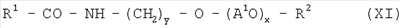 причем В1 означает алкил с 6-22 атомами углерода, В2 означает водород или алкил с 1-4 атомами углерода, a D означает полигидроксиалкильный остаток с 5-12 атомами углерода и, по меньшей мере, 3 гидроксигруппами. Предпочтительно В1 означает алкил с 10-18 атомами углерода, В2 означает метил, a D означает остаток с 5 или 6 атомами углерода. Такие соединения получают, например, ацилированием сахаров после восстановительного аминирования хлоридами кислот с 10-18 атомами углерода. Другие неионные ПАВ, которые можно использовать, представляют известные из международной заявки WO-A 95/11225 амидалкоксилаты жирных кислот общей формулы (XI) в которой R1 означает алкильный или алкиленовый остаток с 5-21 атомом углерода, R2 означает алкильную группу с 1-4 атомами углерода, А1 означает алкилен с 2-4 атомами углерода, у означает число 2 или 3, а х имеет величину от 1 до 6. Примерами таких соединений являются продукты взаимодействия н-бутил-тригликольамина формулы H2N-(СН2-СН2-O)3-С4Н9 с метиловым эфиром додекановой кислоты или продукты взаимодействия этилтетрагликольамина формулы H2N-(CH2-CH2-O)4-C2H5 с коммерчески доступной смесью метиловых эфиров насыщенных жирных кислот с 8-18 атомами углерода. В качестве неионных поверхностно-активных веществ можно также использовать производные полигидрокси- и полиалкоксижирных кислот, например амиды полигидроксижирных кислот, N-алкоксиамиды или N-арилоксиамиды полигидроксижирных кислот, этоксилаты амидов жирных кислот, в особенности с закрытыми концевыми группами, а также алканоламидалкоксилаты жирных кислот. Помимо этих, названных ранее, неионных ПАВ можно использовать, при необходимости, в комбинации с вышеупомянутыми ПАВ, следующие поверхностно-активные вещества: – следует, прежде всего, назвать блок-сополимеры этиленоксида и пропиленоксида, причем центральную часть молекулы предпочтительно образует полипропиленгликоль, – кроме того, пригодны блок-сополимеры этиленоксида, пропиленоксида и бутиленоксида. В предпочтительной форме исполнения подразумевают триблок-сополимеры с блоками «полипропилен/полиэтилен/полипропилен» с молекулярным весом от 4.000 до 16.000, причем массовая доля полиэтиленовых блоков составляет от 55 до 90% от всего триблок-сополимера. Особо предпочтительны триблок-сополимеры с молекулярным весом более 8000 и содержанием полиэтилена от 60 до 85 мас.% от всего триблок-сополимера, – сверх того, можно предпочтительно использовать также закрытые с одной или с двух сторон блок-сополимеры этиленоксида, пропиленоксида и/или бутиленоксида. Закрытие с одной стороны можно обеспечить, например, выбирая в качестве исходного соединения для взаимодействия с алкиленоксидом спирт, в частности алканол с 1-22 атомами углерода, например метанол. Далее, двустороннее закрытие концевых групп можно обеспечить, например, взаимодействием свободного блок-сополимера с диалкилсульфатом, алкилгалогенидами с 1-10 атомами углерода, циклоалкилгалогенидами с 3-8 атомами углерода, фенилгалогенидами, предпочтительно хлоридами, бромидами, особо предпочтительно с циклогексилхлоридом, циклогексилбромидом, фенилхлоридом или фенилбромидом. – далее следует упомянуть экстракты натуральных веществ дерева Quillaja saponaria, которые содержат соединения, называемые сапонинами, и представлены на рынке под названием Mistop®. Дополнительно можно использовать отде