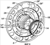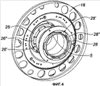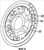 Однако, если ролики 16 ломаются, удерживающий диск 28 через свою радиальную внешнюю поверхность 36 может опираться на внутреннюю поверхность 37 продольной втулки 32 фланца 18; затем они действуют как аварийный подшипник. Если эта функция требуется для диска 28 и втулки 32, радиальное расстояние между внешней поверхностью 36 удерживающего диска 28 и внутренней поверхностью 37 продольной втулки 32 может иметь соответствующий размер.