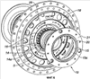 Удерживающий диск 428 здесь выполнен так, что радиальное расстояние между его внешней поверхностью 436 и внутренней поверхностью 437 продольной втулки 432 является довольно коротким, так что может быть обеспечена должным образом функция аварийного подшипника удерживающего диска 428 и продольной втулки 432. Поэтому, если ролики 416 ломаются, внешняя поверхность 436 удерживающего диска 428 будет опираться на внутреннюю поверхность 437 продольной втулки 432, чтобы выполнять свою функцию в качестве аварийного подшипника, без слишком большого радиального смещения.