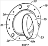 Теперь со ссылкой на фиг.7 будет пояснен монтаж внешнего кольца 15 второго подшипника 7 в кольце 20 опоры 19 второго подшипника для образования соединения, формирующего шаровой шарнир (23, 24). Кольцо 20 опоры 19 второго подшипника содержит две монтажные выемки 20′, 20″, которые расположены диаметрально противоположно, и их размер по окружности соответствует продольному размеру внешнего кольца 15 второго подшипника 7. Внешнее кольцо 15 показано на стороне, обращенной ко второму подшипнику 19, и проскальзывает в эти выемки 20′, 20″. Затем его поворачивают на 90° (так, чтобы его внешняя поверхность 23 опиралась на внутреннюю поверхность 24 кольца 20 опоры 19 второго подшипника, таким образом образуя соединение, формирующее шаровой шарнир (23, 24).