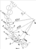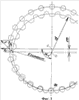 Зацепление роликов 18 и 22 (фиг.7) выполнено по первому базовому варианту, а зацепление роликов 21 и 24 – по второму варианту. Например, роликов позиции 18 установлено 18 штук, а роликов позиции 22 установлено 20 штук. Модуль зацепления выбран 6 мм. Диаметр делительной окружности для роликов 18 равен 108 мм. Количество роликов позиции 21 взято 24 штуки, а позиции 24 – 27 штук. Модуль зацепления для них выбран 4 мм. Диаметр делительной окружности роликов позиции 24 равен 108 мм.