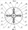 Устройство для бестраншейной замены трубопроводов состоит из труборазрушающего рабочего органа 1, который выполнен цилиндрическим, конического расширителя 2 для увеличения диаметра скважины и тягового элемента 3. В труборазрушающем рабочем органе 1 на его оси симметрии выполнены два сквозных отверстия 4, 5 на расстоянии друг от друга, превышающем диаметр этих отверстий, причем оси отверстий 4, 5 и ось труборазрушающего рабочего органа 1 взимоперпендикулярны. В отверстиях 4, 5 запрессованы направляющие 6, 7, выполненные в виде труб. В направляющей 6 с каждого ее конца располагаются вилки 8, 9, на осях 10, 11 которых напротив друг друга установлены опорный каток 12 и дополнительный опорный каток 13 (фиг.3). В направляющей 7 с каждого ее конца располагаются вилки 14, 15, на осях 16, 17 которых напротив друг друга установлены дисковый нож 18 и дополнительный дисковый нож 19 (фиг.1) для разрезания старого трубопровода 20. При этом опорные катки 12, 13 установлены перед дисковыми ножами 18, 19. Концы направляющих 6, 7 выступают на одинаковое расстояние за границу наружной поверхности труборазрушающего рабочего органа 1, и в каждом из них выполнено по одному радиальному пазу 21, а в вилках 8, 9, 14, 15 – не менее чем по два радиальных паза 22, 23. Вилки 8, 9, 14, 15 имеют возможность фиксированного радиального перемещения в направляющих 6, 7. При этом их закрепление осуществляется с помощью фиксаторов 24-27 (фиг.2), устанавливаемых в соответствующие пазы. К задней части расширителя 2 винтами 28 крепится новый пластмассовый трубопровод 29, расположенный в стартовом приямке 30. Передняя часть труборазрушающего рабочего органа 1 через тяговый элемент (составную штангу) 3 и крюк 31 соединена с силовой установкой (гидродомкратом) 32, расположенной в приемном приямке 33.