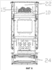 Фиг.7 – схематический вид расположения сопел 18 и датчиков 19 системы подачи инертного газа или водяного пара в конфигурации “b” для контроля температуры и/или концентрации горючего газа в металлическом контейнере 1;