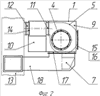 1 – камера (узел устройства); 2 – первое окно; 3 – газовый коллектор камеры зерносушилки; 4 – второе окно; 5 – вентилятор камеры зерносушилки; 6 – жалюзийная стенка; 7 – сборник уноса; 8 – двухпозиционный клапан; 9, 10 – основная и дополнительная секции камеры; 11, 12 – третье и четвертое окна; 13 – газопровод исходного агента сушки зерносушилки; 14 – клапан четвертого окна; 15, 16 – проход для охлаждающего воздуха и затвор этого прохода; 17 – пятое окно; 18 – промежуточный трубопровод.