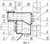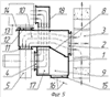 В необходимых случаях, например, по заявке покупателя зерносушилки, устройство по второму варианту включает промежуточный трубопровод 18, присоединенный к пятому окну 17 камеры 1 (фиг.2, 4, 5) и к специальному окну газопровода 13 исходного агента сушки. Это позволяет использовать связанную с устройством камеру зерносушилки еще и в третьем режиме – как дополнительную зону сушки (фиг.5).