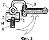 Частичная автоматизация отключения фиксатора 12 и отделения тем самым рукоятки 8 от ложи 2 может быть достигнута, например, за счет механической взаимосвязи спускового крючка 9 (точнее – его тыльной развитой части) с шарнирно установленной выдающейся подвижной частью фиксатора 12 (см. фиг.4).