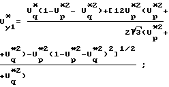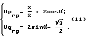 Второй вариант отличается тем, что регулирование активной мощности и средневыпрямленного напряжения при пропорциональном изменении управляющих и выходных координат p = P* = Ud* при условии поддержания нулевого значения реактивной мощности Uq = Q* = 0 осуществляется при трехкратном включении каждого вентиля на периоде сетевого напряжения, а именно первый раз с отстающим относительно точки естественной коммутации углом управления 1= arccosUy3, второй раз в момент, отстоящий от точки естественной коммутации на 180o, а третий раз с опережающим углом управления, по модулю равным | 2| = arccosUy4, и одновременным запиранием работавших вентилей.