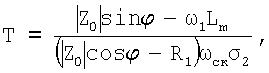 где |Z0| – модуль полного электрического сопротивления фазы обмотки статора; 1 – угловая частота тока статора; R1 – активное сопротивление фазы обмотки статора; ск – угловая частота скольжения ротора; 2 – коэффициент рассеяния магнитного поля ротора; – фазовый угол сдвига между током и напряжением фазы обмотки статора, при этом превышение температуры обмотки ротора относительно его известной температуры t0 определяется вычислительным устройством по соотношению: