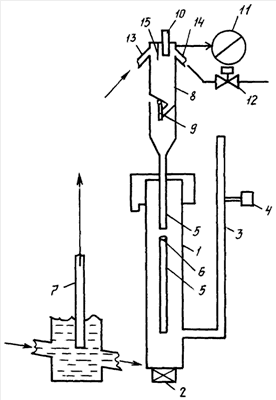 После окончания исследования отбираемой пробы открывают клапан слива 2 и освобождают осадительную трубу 1.