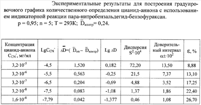3. Наиболее высокий уровень чувствительности определения цианид-аниона достигнут при использовании окислительно-восстановительной реакции ортодинитробензол – паранитробензальдегид с пределом обнаружения 1,0·10-6 мг/мл [Guilbault G.G., Kramer D.N. Ultra Sensitive, Specific Method for Cyanide Using p-Nitro-benzaldehide and o-Dinitrobenzene. Anal. Chem., 1966, 38, 2, 7, p.834].