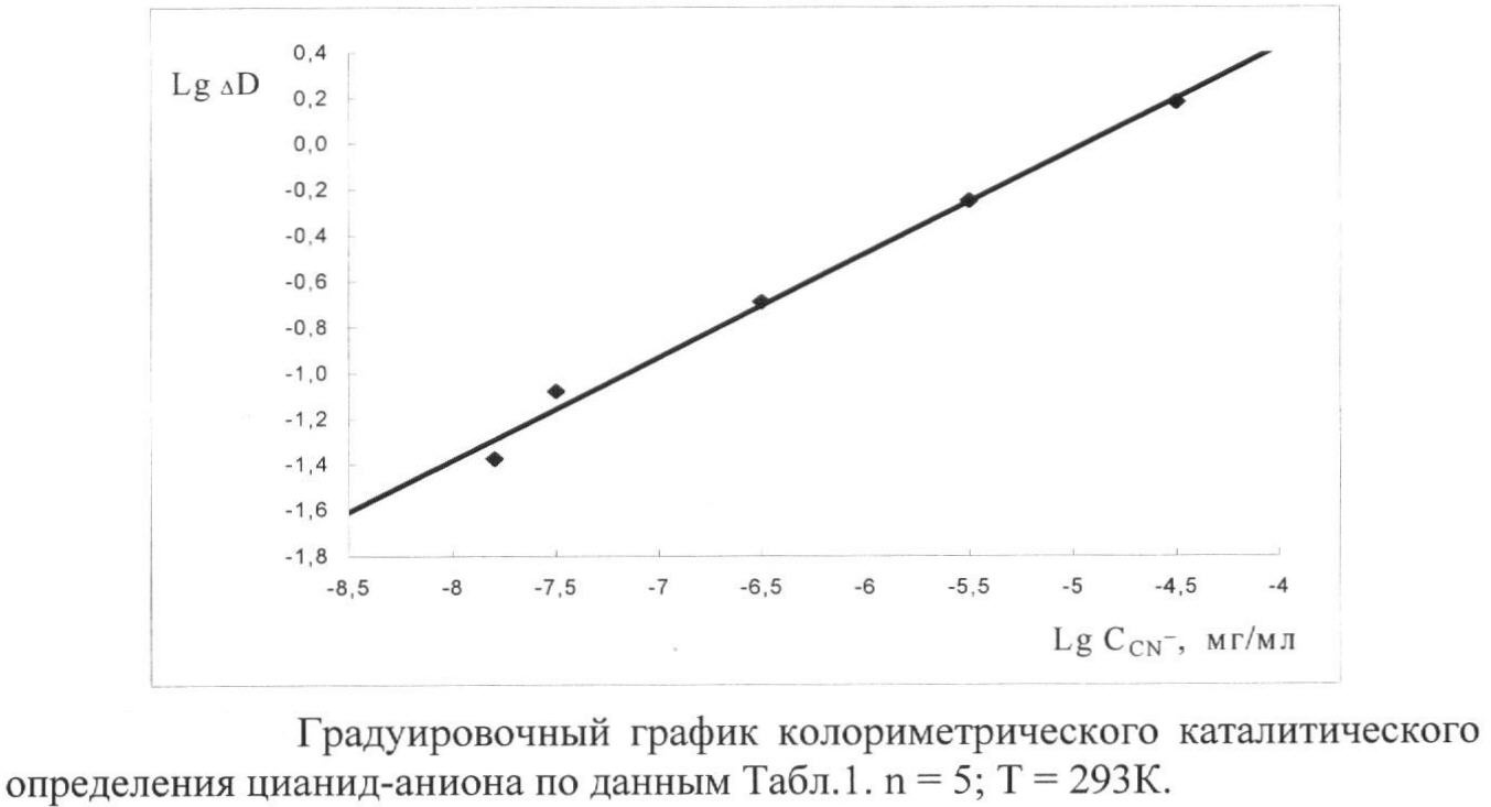 Количественное каталитическое определение цианид-аниона проводят с использованием полученной градуировочной зависимости.