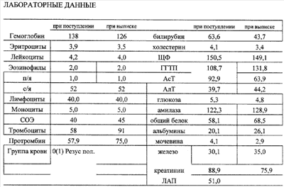 Общий анализ мочи: уд. вес – 1017, белок, сахар – нет, лейкоциты – 4-5 в п/зр. Проводят диагностику внутрипеченочного холестаза при хронических заболеваниях печени, определяя соотношения гаммаглютамилтранспептидазы к щелочной фосфатазе (ГГТП/ЩФ), гаммаглютамилтранспептидазы к лейцинаминопептидазе (ГГТП/ЛАП), щелочной фосфатазы к лейцинаминопептидазе (ЩФ/ЛАП) в сыворотке крови, и диагностируют алкогольную болезнь печени при ГГТП/ЩФ больше 1, ГГТП/ЛАП меньше 2,5, ЩФ/ЛАП меньше 2,5. Согласно заявленным критериям исследовано 115 больных, выявлена высокая диагностическая достоверность выявленных критериев дифференциальной диагностики. внутрипеченочного холестаза при различных этиологических формах заболеваний печени.