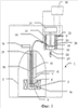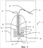 Пример первого варианта осуществления изобретения показан на фиг.1. На этом чертеже показано криостатное устройство 1 для поляризации твердого материала, которое содержит средства растворения твердого поляризованного материала, выполненные согласно первому варианту осуществления изобретения. Устройство 1 (показанное штриховой линией) включает криостат 2, содержащий средства 3 поляризации, например СВЧ камеру 3а, соединенную с источником 3с СВЧ излучения посредством волновода 3b, в центральном канале 6, окруженном средствами создания магнитного поля, например сверхпроводящим магнитом 5. Криостаты и средства поляризации, предназначенные для поляризации твердого материала, хорошо известны, и поэтому их конструкция не будет описываться подробно. Канал 6 идет вертикально вниз по меньшей мере до уровня области Р около сверхпроводящего магнита 5, где индукция магнитного поля достаточна для поляризации материала, например составляет от 1 до 25 Тл. Центральный канал 6 является герметичным и может быть откачан до низкого давления, например порядка 1 мбар и менее. Средство для ввода образца, например съемная трубка 7 для транспортировки образца, может вводиться в канал 6, эту трубку 7 можно вставить в верхнюю часть канала и опустить вниз до СВЧ камеры 3a в области Р. Область Р охлаждается жидким гелием до достаточно низкой температуры, позволяющей осуществить поляризацию материала, например до температуры порядка 0,1-100 К. Чтобы в канале 6 сохранялся частичный вакуум, трубку 7 можно герметизировать на верхнем конце любым подходящим способом. Контейнер для образца, например чашка 9, может быть вставлен, с возможностью последующего снятия, в нижний конец трубки 7 для транспортировки образца. Эта чашка 9 предназначена для размещения в ней любого материала, введенного в трубку 7. Чашка 9 предпочтительно выполнена из легкого материала с низкой удельной теплоемкостью, такого как пенопласт, например из полистирола, чтобы теплоемкость чашки 9 была как можно меньше. Герметичная входная трубка 10 для подачи гелия (для упрощения чертежа показана штриховой линией) проходит от верха канала 6 до дна чашки 9.