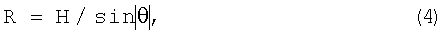 Дополнительное преимущество в измерении направления на фотонный источник по двум угловым координатам заключается в возможности определения расстояния до источника и, как следствие, дистанционной оценки его активности (при условии нахождения источника на земле и известной высоте Н расположения устройства относительно земли). Расстояние может быть вычислено по формуле: