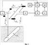 Генератором 1 периодического напряжения формируется электромагнитное поле, которое излучается дипольным излучателем 2. В качестве дипольного излучателя 2 используется, например, контактный электрический диполь, момент тока которого сориентирован перпендикулярно к направлению движения поисковой установки. Направление движения поисковой установки указано стрелкой.