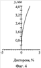 На фиг.4 приведен график дисторсии для примера реализации: по оси ординат указаны величины изображения у’ в плоскости изображения, по оси абсцисс – относительная дисторсия в процентах. Как следует из графика, дисторсия для края поля не превышает 2,3%, что является приемлемой величиной для объективов тепловизионных приборов.