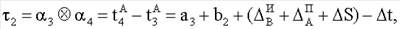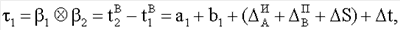 aj, bj(j>1, 2, 3)- время распространения сигнала между ИСЗ и пунктами А и Б соответственно;