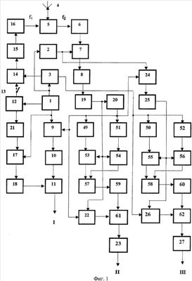 Селектор 19(19,1) содержит удвоитель 36 фазы, первый 37 и второй 38 измерители ширины спектра, блок 39 сравнения, пороговый блок 40 и ключ 41.