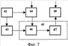 В качестве примера на фиг.7 представлена структурная схема аналогового скремблера, использующего метод частотной инверсии. Устройство состоит из тактового генератора 42, вырабатывающего сигнал частотой 7 кГц, делителя-формирователя 43 несущей 3,5 кГц, аналогового коммутатора 46, балансного модулятора 45, входного полосового фильтра 44, сумматора 47 и фильтра 48 низкой частоты.