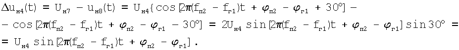 uн1(t)=uн4-uн5=Uн3{соs[2 (fп1-fпр1)t+ п1– пр1+30°]-cos[2 (fп1-fпр1)t+ пр1-30°]}=Uн3sin[2 (fп1-fпр1)t+ п1– пр1].