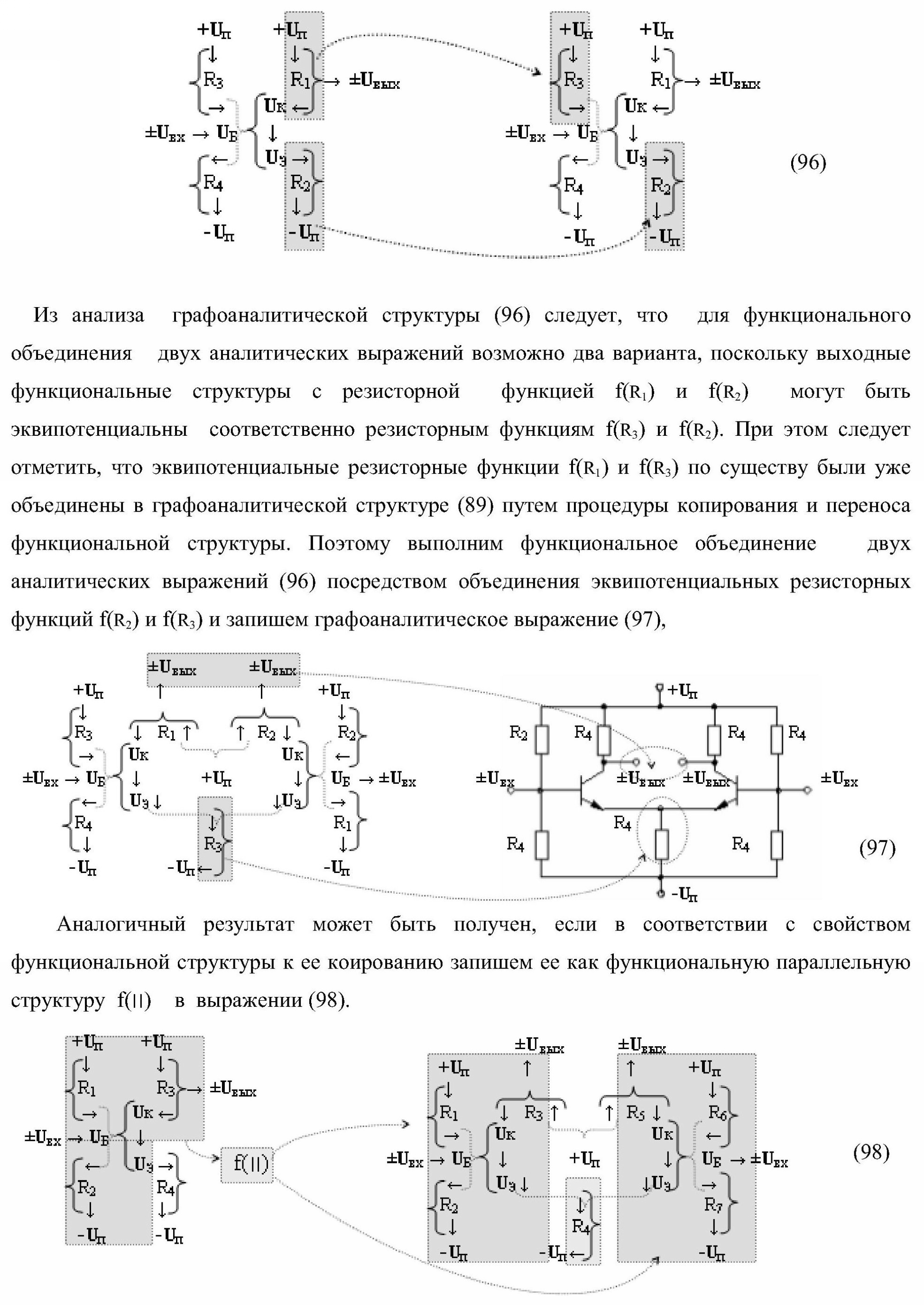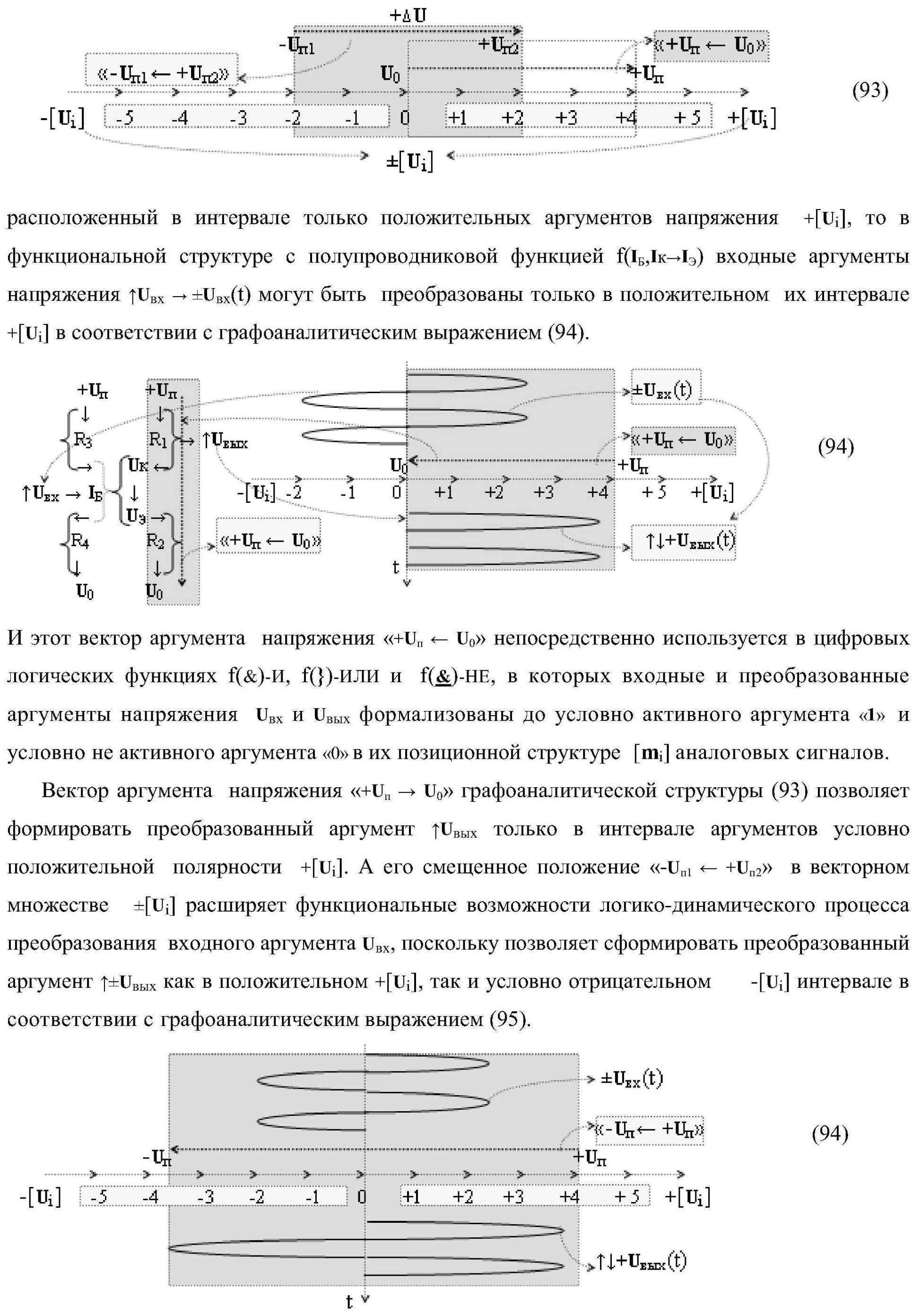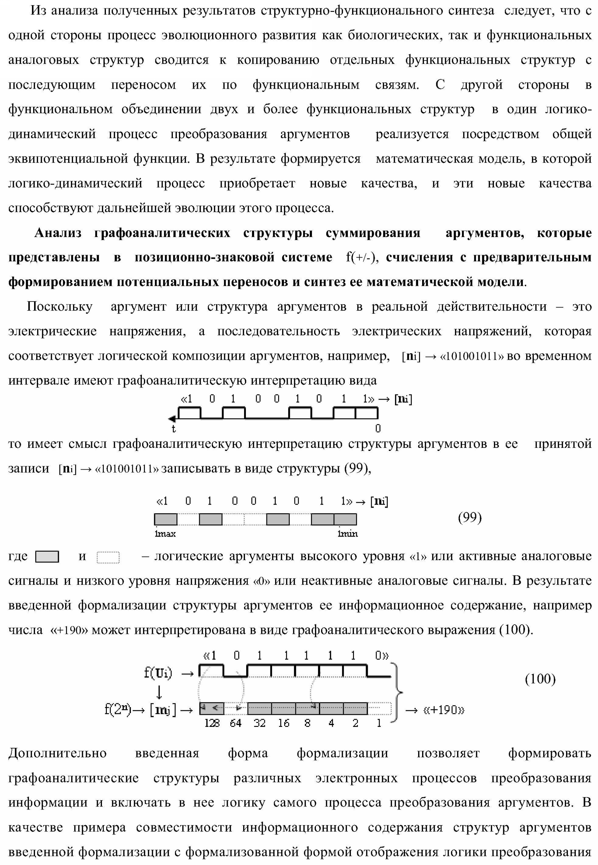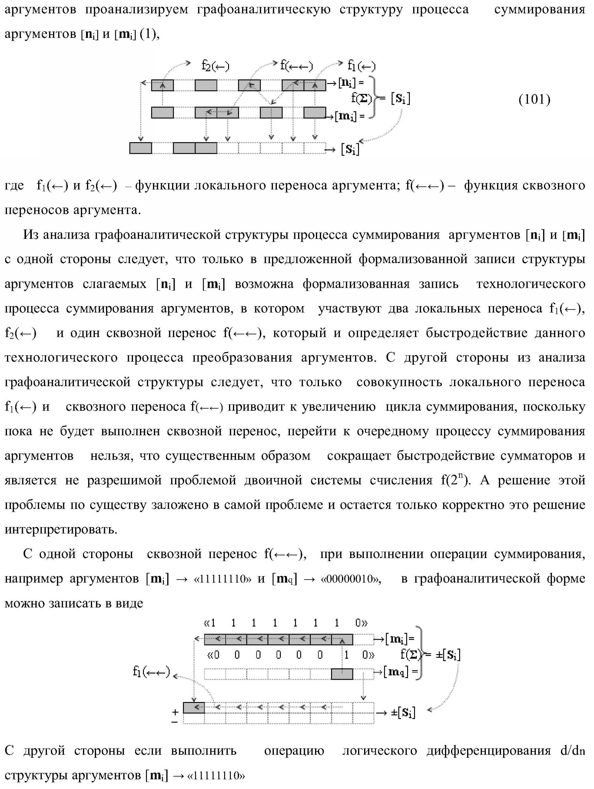 1. Функциональная структура параллельного сумматора для умножителя, в которой условно «i» разряд включает логическую функцию f1(&)-И-HE, в которой две функциональные входные связи являются функциональными входными связями разряда для приема аргументов слагаемых ni и mi, a функциональная выходная связь является выходной функциональной связью разряда для формирования аргумента второй промежуточной суммы S2 i с измененным уровнем аналогового сигнала и является первой функциональной входной связью логической функции f1(&)-И и включает логическую функцию f1(})-ИЛИ, а также включает логическую функцию f2(&)-И, в которой функциональные входные связи являются функциональными выходными связями логических функций f3(})-ИЛИ и f4(})-ИЛИ, отличающаяся тем, что условно «i» разряд структуры параллельного сумматора выполнен в виде положительного и условно отрицательного канала для формирования аргумента положительной суммы +Si и аргумента условно отрицательной суммы -Si, при этом в положительный канал введены логические функции f2(})-ИЛИ, f2(&)-И-НЕ, а в условно отрицательный канал введены логические функции f3(&)-И-НЕ и f4(&)-И-НЕ, при этом функциональные связи логических функций в структуре сумматора выполнены в соответствии с математической моделью вида