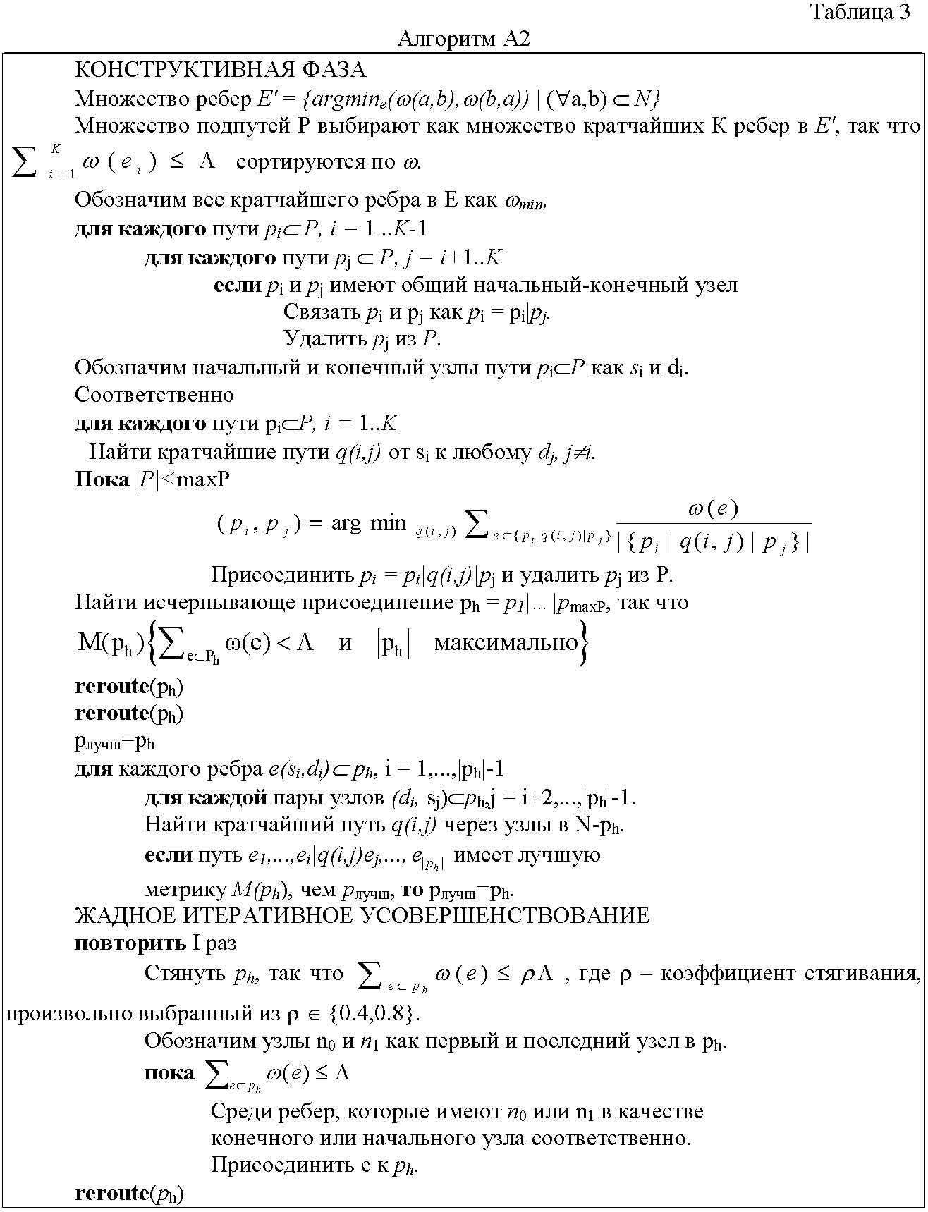 На фазе итеративного усовершенствования мы несколько раз повторяем следующий цикл. На первом этапе А2 стягивает наилучший найденный к настоящему моменту путь pлучш в ph, так что |ph| максимален, и сумма весовых коэффициентов вдоль ph меньше доли  . Параметр стягивания произвольно выбирают в каждой итерации в p {0.4,0.8}. Узлы n0 и nl обозначены как первый и последний узел в ph. Хотя сумма весовых коэффициентов в ph меньше , среди ребер, которые имеют n0 или nl в качестве конечного или начального узла соответственно, находим ребро е с минимальным весом присоединяем его к ph. Когда новый путь-кандидат ph создан, его принимают как наилучшее решение, если его метрика лучше метрики наилучшего пути, созданного до сих пор. На последнем этапе цикла итеративного усовершенствования А2 осуществляет вышеописанную процедуру повторного обхода.