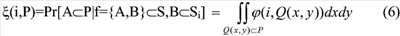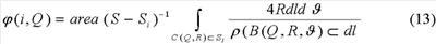 Пусть один из квадратов Si освещен, тогда функция плотности вероятности (ФПВ) (i,Q(x,y)) определяется для любой точки Q(x,y) S-Si через вероятность (i,P) того, что область P S-Si содержит освещенную концевую точку А волокна f={A,B} при условии, что другая концевая точка В располагается в освещенной зоне Si. Более формально для любой P S – Si