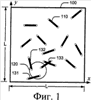 На фиг.1 показан пример объекта 100 аутентификации для использования как части ярлыка, например, сертификата подлинности. Для эффективного использования в сертификате подлинности объект 100 аутентификации обычно содержит произвольно распределенные признаки, которые являются уникальными и которые трудно копировать. Пример объекта 100 аутентификации, показанный на фиг.1, является частью сертификата подлинности на основе волокон и содержит волокна 110, внедренные в объект произвольным образом. Волокна 110 выступают в качестве произвольно распределенных признаков объекта 100 аутентификации. Волокна 110 могут быть включены в объект 100 аутентификации любыми средствами. Например, волокна 110 можно распылять на объект 100 аутентификации. Волокна 110 можно также внедрять в объект 100 аутентификации в процессе изготовления. Согласно одному варианту осуществления, волокна 110 являются оптическими волокнами, способными пропускать свет между своими концами. Таким образом, облучая светом определенную зону 120 объекта 100 аутентификации, освещают концы волокон 131-133, по меньшей мере, один конец которых находится в освещенной зоне.