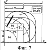 На фиг.6 изображено графическое представление областей P1-P4, соответствующих четырем различным зонам в иллюстративном объекте 600 аутентификации. Для каждой точки в определенной области Рх вычисляют функцию ограничения периметра с использованием замкнутой аналитической формы, характерной для этой области, с использованием уравнений 7-10, которые рассмотрены ниже.