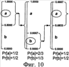 На фиг.10 показано графическое представление примера того, как арифметический кодер кодирует строку “aba” с использованием алфавита L={a,b} с неизвестной ФПВ появления символов. Пример показан на фиг.10.